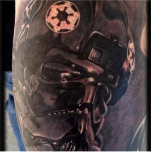You can see Emperor Palpatine looming over a clone trooper, a scout trooper, an AT-AT driver, Boba Fett, and others in the tattoo. View more of the intimidating Star Wars trooper sleeve in the gallery below.