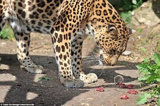 He said: 'I have no idea where the mouse came from – he just appeared in the enclosure after the keeper had dropped in the meat for the leopard.
