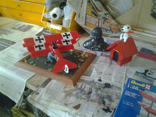I tried to print the plane but he ended up buying one. That worked out better, printing it would have cost more, the directions were nonexistent and it would have been even more of a headache to make. This one was bad enough! The thread had both of us ready to scream! This was his first model ever. (not kidding, dad and I were lax in his education! He did okay though, even if he goofed on the 2nd wing decals and glue)I printed, primed, sanded, and painted the bust of the Red Baron as well as the Red Baron's nemesis. >:D I couldn't resist throwing him in.