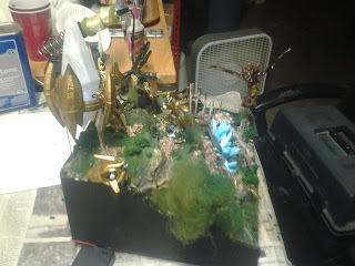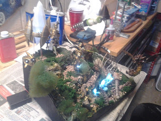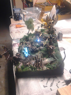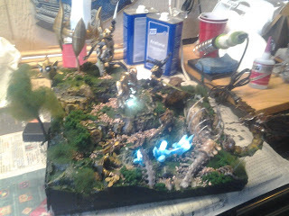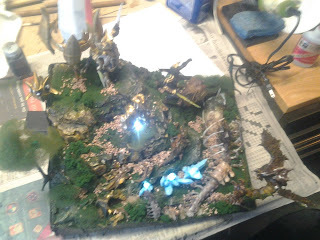 First up, sitrep: I finished my StarCraft diorama. I have a couple of crappy photos with my phone. My brother-in-law said he'd get better shots with his camera sometime in the future. (most likely Thanksgiving) Here is what I've got: