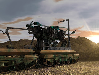 Mechmaster (He's more famous with his Daleks than mecha) helped me clean the ground up with procedural generated textures and displacement maps. Fun.I also have the Karanak Firewalker spider tank nearly finished. I printed a few bits yesterday but I can't get the basket to print right for the life of me. It is so spindly it comes apart! I admit, I'm too much of a fumble fingered idiot with fragile stuff okay? I'm about to give up and go with the best one I've got. 6 tries at printing it are enough.