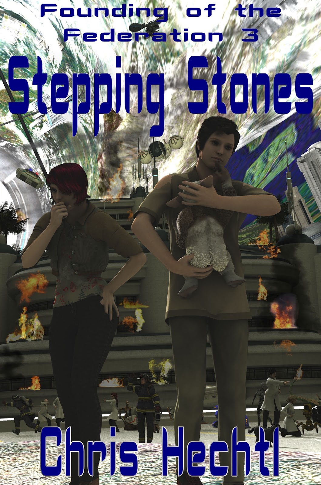 I've been poking at Pirates Rage and The First A.I. War for a bit now. I made the cover of Stepping Stones...and sent it out to be critiqued by the Betas. Some negative feedback got me to try to reshoot the cover... and it overheated my PC. (serious panic there for a bit, since I hadn't done a backup in a while!) There is damage but I got a lot of it sorted out. But there is permanent damage, my PC temps are hot even while idle now. (even with liquid cooling and all the fans I've got running inside it) I can't and won't try to render again. Not until I figure something else out.