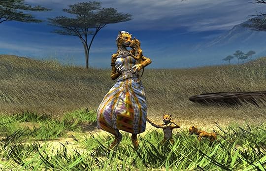 Oh, I did this a while ago, I forgot to post it. This is Cheetahra from Agnosta. (I don't remember what generation she is) She is in the current time period. (Irons)