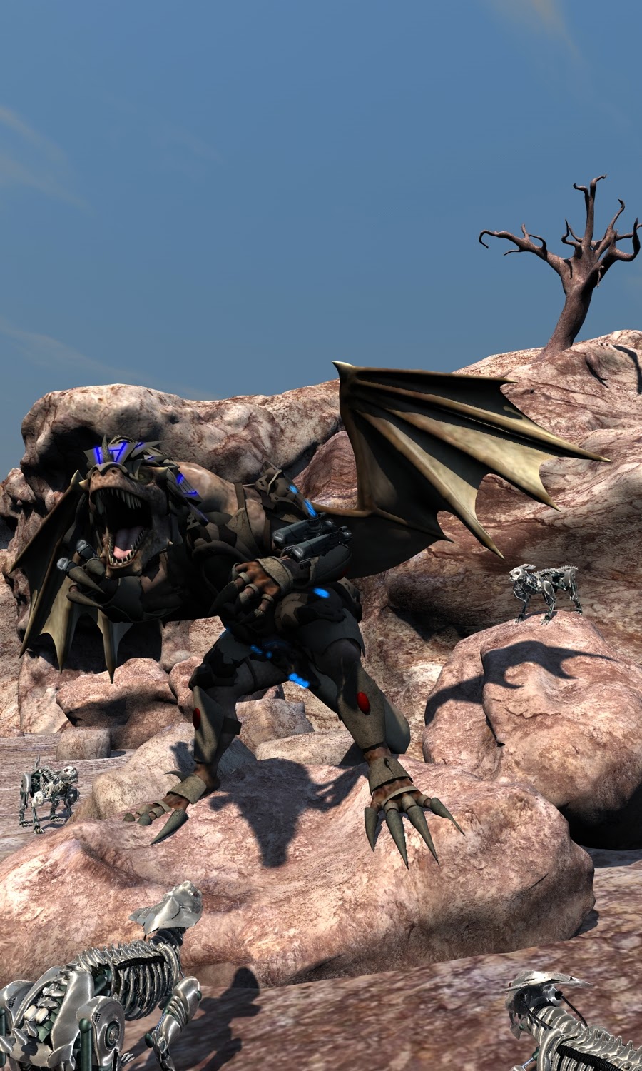 That is a drone that squished a Veraxin. The redressed drone is from Daz3D and is someone's version of the drones from the movie Oblivion. The guns and 'face' are facing the left out of view.