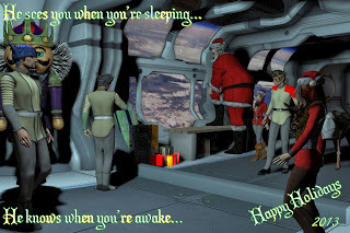He entered the shuttle bay and smiled to his loyal crew as he stepped up to the sleigh. His wife gave him a kiss and a smile, better tonic than any bottle of rum.