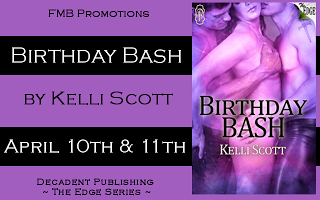My Review: As much as I LOVE Decadent Publishing and all they have to offer...I must say this is my first Edge series book to read and review. I can also say with extreme certainty that it will not be my last either as far as the Edge series or Kelli Scott is concerned!! Aren't their covers just to die for ? I absolutely loved and could totally relate to Juli in this story. She is a true home-body type, never taking unnecessary risks or stepping 'out-of-the-box' persae. I have to admit that i'm also one that isn't very spontaneous as Dara explained of her best friend. I sure wish my best friend would send me a birthday present like Jared and Damian :) I'm pretty sure if I opened my front door to two of the polices finest that also take off their closes at the drop of a musical note i'd be in heaven !!! Kudos to author Kelli Scott for writing a story about a scenario that is more than possible in this day and age and for creating great believable characters. Birthday Bash was a super quick read but really packed one hell of a punch. I'm thrillled to know that Jared may just be hanging around and I can't wait to see if Kelli Scott has more in store for these two characters. I proudly give 5 stars !!! (Make sure you visit this tour link so you can visit all the other great sites!)http://www.fmbpromotions.com/2013/04/book-blitz-tour-birthday-bash-by-kelli.html