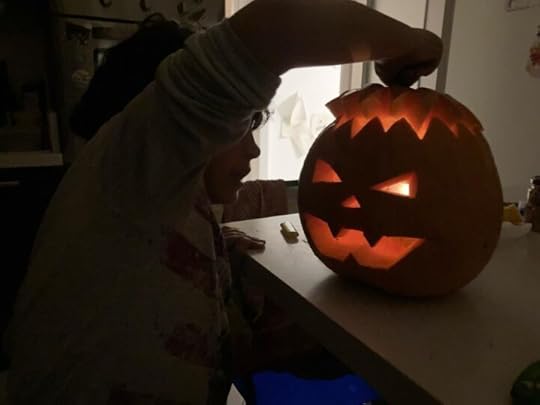 E delle volte è poi facile, tipo che il fruttivendolo, mentre sei lì a comprargli delle carote col ciuffo, ti regala una zucca, arrivi a casa e trovi un coltello che taglia, e una candela spenta da anni in fondo a un cassetto; delle volte è poi facile, dicevo, esser contenti.
