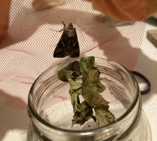 Abbiamo aperto il barattolo, abbiamo tolto la retina, la falena rimaneva lì attaccata, ogni tanto muoveva una zampa, ma poco. Sembrava dormire, o immersa in pensieri molto profondi.