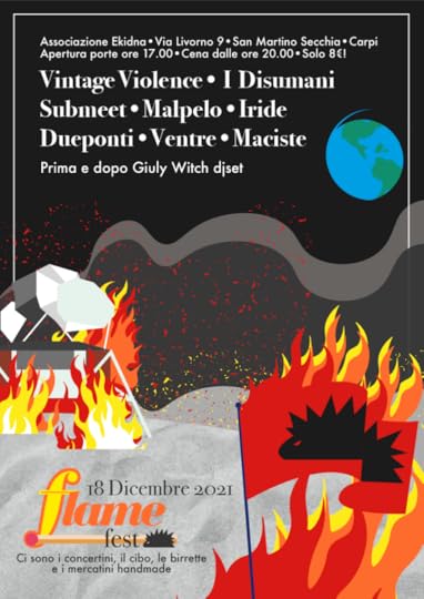 E sabato 18 dicembre, se va tutto bene, coi DUEPONTI (in maiuscolo, tutto attaccato) suoniamo al Flame Fest, il festivalino di musica bella che fanno all’Ekidna di San Martino Secchia, frazione di Carpi, in provincia di Modena. Comincia alle 18 e ci sono sette o otto gruppi (l’ordine lo scoprite quando siete là, quindi arrivate presto).