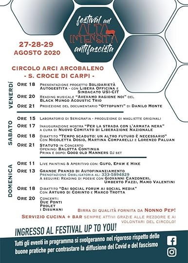 E quindi, pensa te, si torna a suonare, e così il 29 agosto coi DUEPONTI (in maiuscolo, tutto attaccato) saliremo sul palco di un festivalino carpigiano cui siamo molto affezionati: il Festival ad Alta Intensità Antifascista, al Circolo ARCI Arcobaleno di Santa Croce, frazione di Carpi, in provincia di Modena.