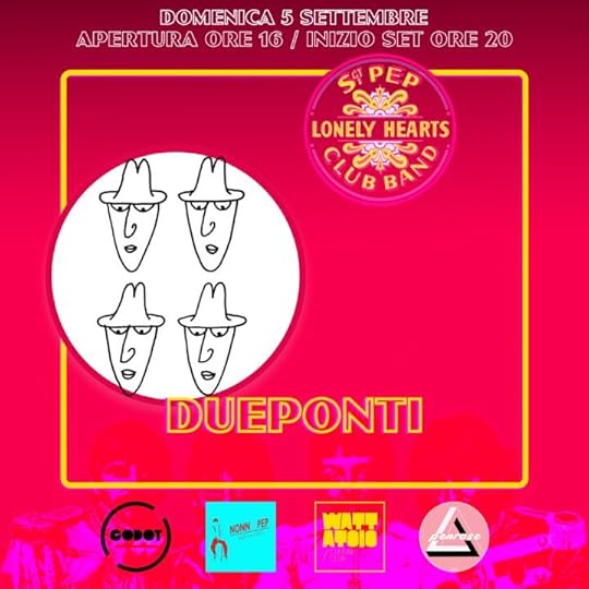 E invece, pensa te, domenica 5 settembre, più o meno alle 20, coi DUEPONTI (in maiuscolo, tutto attaccato) suoniamo da Nonno Pep, un posto dove puoi bere della birra buona, ma buona davvero, per il settimo appuntamento di una rassegna intitolata Sgt. Pep Lonely Hearts Club Band organizzata da Mattatoyo Culture Club, Godot Sound Culture e Associazione Penrose (spero di essemi ricordato tutti).