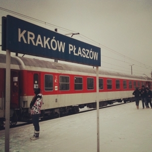 [Non riesco a dormire, allora mi lascio cullare dalla lettura e dal concerto per nasi intoppati e corde vocali che mi si svolge intorno, nello scompartimento. Sento il treno che si ferma, scendo dalla scaletta del lettuccio al terzo piano, senza fare rumore per non svegliare nessuno, guardo dal finestrino e fuori c’è la Repubblica Ceca. Gli studenti che non dormono, gli studenti non dormono mai, aprono le porte e scendono in massa a sgranchirsi le gambe, a fumare, saranno le tre del mattino. Penso di colpo che in Repubblica Ceca non ci sono mai stato, allora mi rimetto le scarpe e mi infilo tra i diciottenni, e scendo, così, solo per appoggiare i piedi in terra straniera. Dura una ventina di minuti, poi il fischio del capotreno dice a tutti di salire. Allora sì, adesso mi sfilo le scarpe, torno nel lettuccio al terzo piano e dormo, cullato nella nave che ondeggia, mi unisco alla caccia al drago e forse al concerto per nasi intoppati e corde vocali che ancora si svolge nello scompartimento. Quando mi sveglio c’è la Polonia grigia e inospitale. A Kraków-Płaszów, che non è una stazione qualsiasi, scendiamo e prendiamo il posto sugli autobus, ognuno il suo, già assegnato. Su ogni autobus c’è una guida, diventerà la nostra migliore amica. Bon, il viaggio in treno è finito, adesso inizia quello nella Storia, per la Memoria, nella gelida follia della razza umana.]