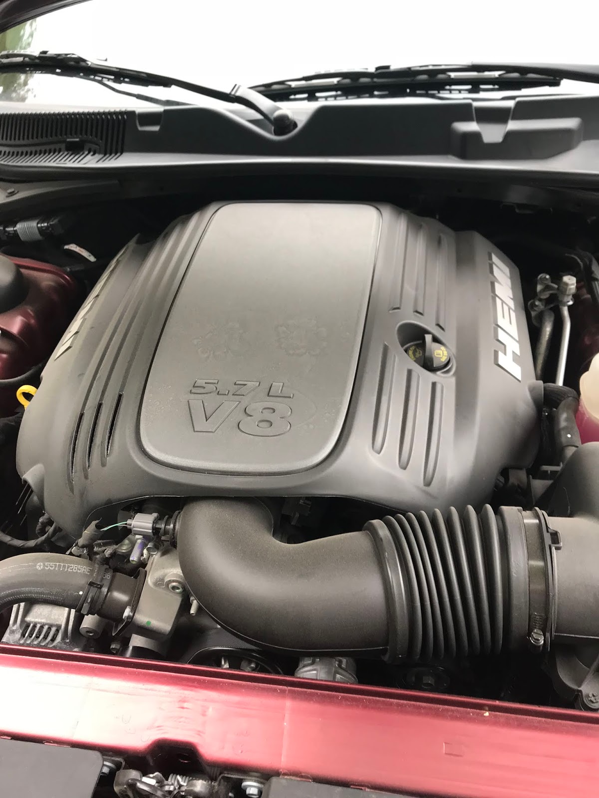 5.7 L HEMI V-8explore that power much because of traffic (lots and lots of traffic). But I did once in rural Maryland "floor it" and the car accelerated nicely. And I once accidentally chirped the rear tires.The interior was comfortable for two. But if more than that, it was difficult to put adults in the back seat (in a nor'easter downpour no less). But the sound of the car was melodious. Even at idle the exhaust sound was lovely. When accelerating, it was orgasmic.