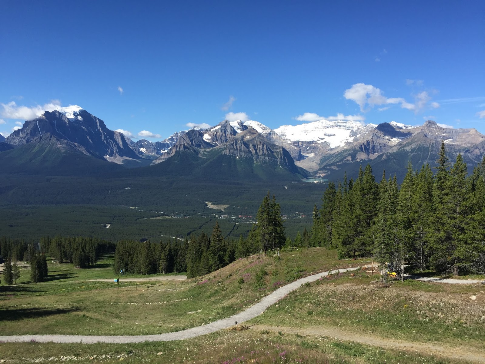 You can see amazing mountains and Lake Louise from that height. Here's Lake Louise: