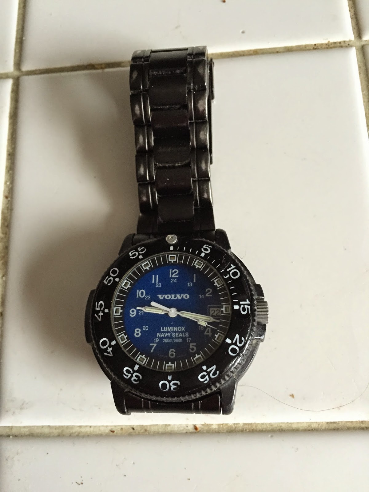 Last July my wife bought me a new watch for my birthday.But, in a bittersweet moment, I had to give up my old watch that I'd had for at least ten years. The watch was given to me as a promotional deal with Volvo (which is why the watch says Volvo). It was the most accurate watch I'd ever owned, gaining only around 20 seconds a month.