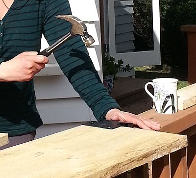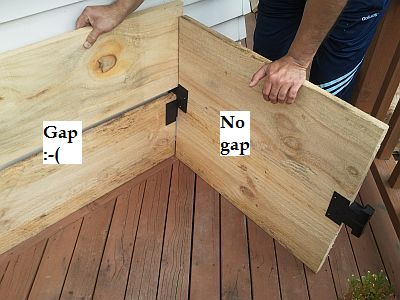 That seemed like a good height. Only, there was one problem. Whatever I did to the side at right angles to the doubled up planks - joined them together or left them seperate - they ended up with gaps either at the bottom of the container or between planks. Gaps in a container I meant to fill with soil simply wouldn't do.