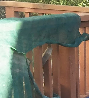 After all that effort, wouldn't you know :), our dogs are still able to jump in. I'm adding a strong net to cover the container, not only to keep birds out but to prevent the