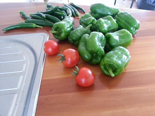 This summer we tried growing a few fruit and veges in our own home-composted soil. I can't begin to tell you how impressed we were with nature's bounty. We had a bumper crop each week and it lasted us throughout summer. Our capsicums were the sweetest and tender crisp, our cherry tomatoes were sweet and juicy and our mirchi, fat and not too teekha - exactly as we like them. Next season we are planning on more varieties of veges, fruit and herbs.