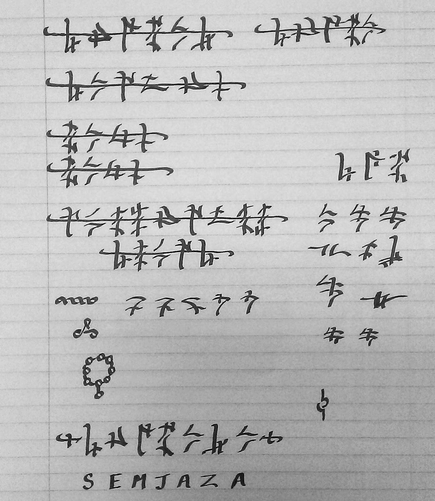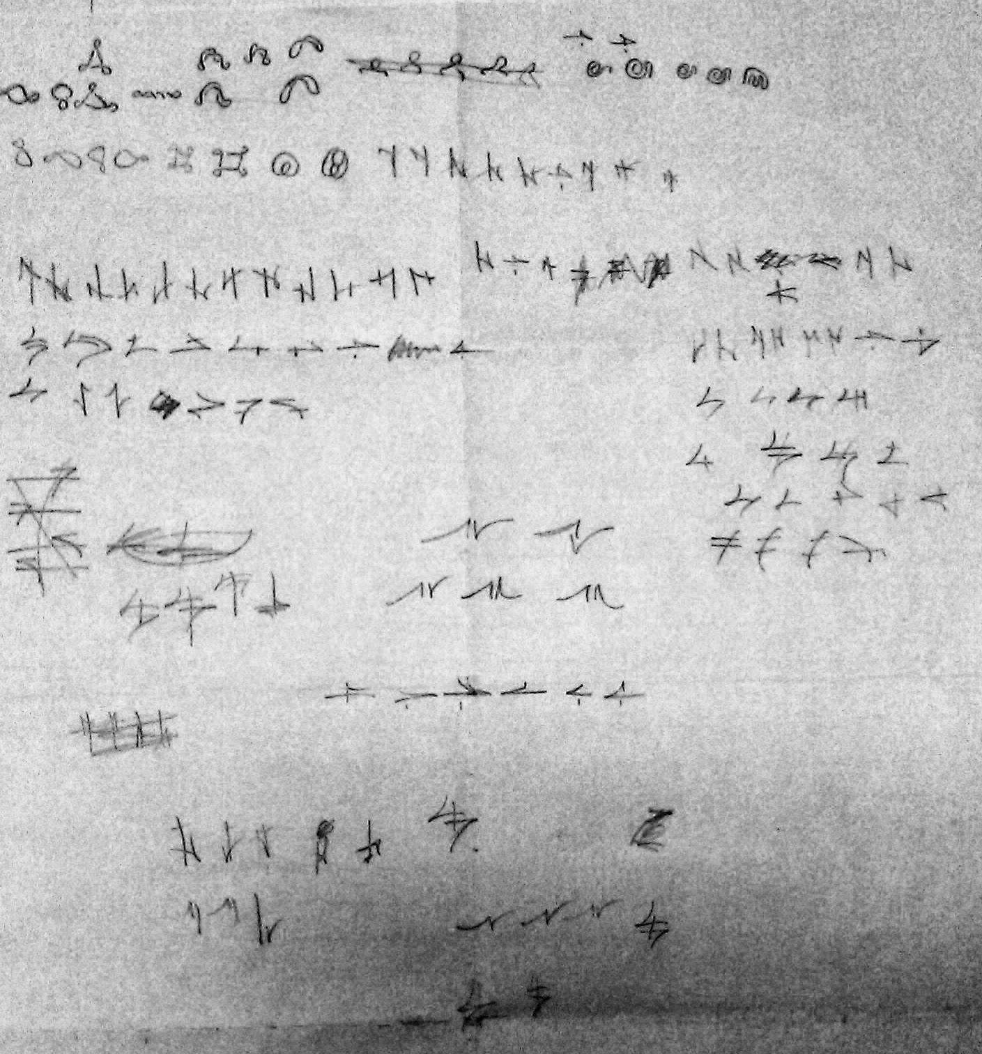 In the years before I started writing the first book of The Awakened series, I spent many hours imagining the backstory. Inspired by the methodology of J.R.R. Tolkien, who created entire cultures starting with their languages, I imagined the angelic realms and what the lives of these mysterious creatures might be like. I thought about sound waves being transmitted through different environments and whether language meant the same to them as it does to us. By the time I started planning Incarnation these imaginings had grown into a full-blown desire to create my own languages for all of the angelic and human races. Here is something I wrote in a notebook during that time:Spoken Language: The language of the angels is a complex arrangement of sounds emitted both in series (melody) and in parallel (harmony). Different orders of angels are given different physical and mental capacity to perceive and create sound, such that lower orders can only understand and speak a fraction of the language. Because the language requires the simultaneous creation of more than one sound/note, it is physically impossible for humans to speak it. Thus, the angelic language became known as the unspeakable language.Just as our ears can only hear a range of frequencies, and our vocal chords can only create a range of frequencies, so also it is among the orders of angels. The fallen angels turned from their original purpose. As such, they adopted dissonance as their language.Written Language: The language of the angels can be expressed through written form due to the absence of physical restrictions (many characters making up one word). Therefore, the written language of the fallen angels is based on eastern musical scales (having a dissonant sound), while the original language is based on western scales (having a harmonic sound).I even began scribbling the origins of what I hoped would become the written angelic language. Here are a few of those doodles: