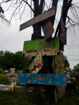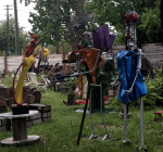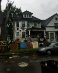 One of the highlights of Detroit for me was the Heidelberg Project in the McDougall-Hunt neighbourhood. It was created in 1986 by artist Tyree Guyton. His wife and grandfather (Grandpa Sam) got involved too. Tyree Guyton began the project as a political protest after watching the childhood neighbourhood he grew up in go radically downhill after the 1967 riots. He said when he came back from serving in the Army his home area looked like a bomb had went off. This transformation in an area where people used to be afraid to walk even during the day, has evolved over decades. Tyree works with kids on the block making the artwork a true part of the community. In 2005 it go the Rudy Bruner Award for Urban Excellence. There is something really magical about the Heidelberg Project and the art sculptures just next door — I will always remember it, it’s one of my favourite memories of this Outriders trip so far.