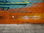 Share the road. Get off. Get someone else off. Walk along beside the road. Rollerblade it. Only travel a road it if takes you to the ocean. The truth has much to say. In San Francisco I see a man with a shopping trolley and no shoes, he has a huge white shaggy dog riding up in that trolley with big black eyes like Cleopatra. I meet a man who tells me I might get shot in LA. I meet a man in a bar who says he killed his wife. His parole officer would like his photo. I ask him without blinking what time the bands are on, it’s all I wanted to know comrade. When the truth makes eye contact I never look away. End your detour. The truth is Black Lives Matter. I arrive on 62nd and the sign above me reads — The Devil’s Here. The truth is gasoline. It’s a vestal lady. It’s raw. The truth is not penetrating. The truth is strapping itself on. It’s procrastination. The truth is vital. It’s controversial. The truth is not destroyed by madness. It’s angry. It has not even the vaguest time for hipsters. Where’s your manifesto? There’s no angels in Idaho. It’s time to Lay Down Your Arms. The tsunami is coming. Fuck Hate. One of these days will always be one of these days. These are the good old days. I tell the man who is irritated by my composure that it’s not my generations fault we were brought up as capitalist children, raised to think each interaction had a value based transaction, and despite that, this era is full of youth and venom and underrated genius’s or bastions of kindness – and all of them are extraordinary. I tell him to take his bitter pill and mix it with his tea. Don’t tell me what I am stranger. Truth is something you can’t tell on sight. Truth is not bone deep. The truth is having its 91st birthday. There’s so many homeless here I am dizzied. The truth is I see all of them as the children they were with eyes open and hopeful and haunting, I see them with long socks or brightly coloured balls, ignored or misunderstood by those who should love them. I see them unable. I see them vulnerable. I see them afraid. I see them defiant. I see them weary. I see them hungry. I see them with dignity and without dignity. I see their children selves in dirty old clothes. That man jumping on the sidewalk, kung-fu kicking the air. I want to bake him a cake and hold him and tell him a story but I’m a prickly person and the truth is I too know what it is to spend nights on streets — it’s a truth I don’t talk about but that doesn’t take it away. The truth is still Fuck Hate. Don’t divide me from other people with your ideas of division. My neighbour is me. My neighbour was hurt by my great, great, great grandfather and I am crying on the side of the street. The truth is golden. The truth is women. The truth is women writing. It’s not the truth that is writing women out of history — it’s something else señor. The truth is clitoral. The truth is a banned book. The truth is I don’t miss beatniks. The truth is naked. It steals time. The truth is literary. The truth is fearful. It is words. It is one thousand years-old today. It’s mono. It is a city of light. The truth is my camera is gone. I am the truth. The truth is sleeping on a sidewalk. If you find my truth, run it a bath and put it to bed, please.The truth is Underwoods. The truth is Redwoods. The truth is I went to the oldest trees on earth and they knew I was there and I spoke to them and they tolerated me but the truth is they’ve been walking so long and growing so tall and we humanoids to them are still so very disappointing. The truth is Miwi. The truth is I wasn’t in the room when he dedicated me a song. I’ll meet you in truth. It’s the only place I know. They say that Jesus was a beatnik but they also say he rose from the dead and we should drink his blood and eat his flesh. It’s disgusting. The truth is white people are not white, I’m reading about this truth in a book by Ta-Nehisi Coates. The truth is on the radio but the station is obscure. You seek it out. You go through the fuzz and hum and warble until it declares itself clear as the first call of a sparrow to dawn. The truth is ripped. It’s CND. It’s foggy. It’s debatable. It’s 20% of Americans believing we are being controlled by chem trails. It might not be 20% but the thought of it still pleases me. The truth is mind control. We are raised in institutions that teach us what to think and what to believe and we work in jobs that leave little time for thinking and loving and creating and being — the truth is human trafficking, it’s child abuse, it is domestic violence, it is poverty — there is nothing more truthful than poverty. The truth ignores me. I go to its door and hammer on until it shouts out the fucking window at me. It’s a wage. It’s systemic, generational violence inflicted on the psyche and body and opportunities of people of colour. The truth is all colours are equal but some are more equal than others. The truth is that was an idea brought about by psychopaths. The truth is every child. The truth should be.Every parent raising kids hans solo is the truth. The truth is lonely. Nobody’s defending it with guns or armies. The truth did not go to school. It did not go to school because someone forgot to tell the schools they were not there solely for brainwashing, institutionalising or taming true potential. The truth is emotional. The truth won’t make amends. The truth has to be spoken to do so. The truth should be foundation and core of every building. The truth knows what you did wrong. It’s a brake check area. The truth is divided. It’s a concrete washout. It’s shoulder is closed. The truth is calling. The truth is speeding but the cops won’t pull it over. The truth got pulled over and it gave a fake ID. The truth is somewhere in San Francisco there lays my camera but it is not with me. The truth brought my monsters flowers and invited them to love me. The truth is our earliest