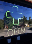 On our way to visit a Merry Prankster we stopped off at several places for gifts. One of those was a high-end pot bar. I would rather have visited a low-end pot bar, just to see the difference. I think it is sensible that cannabis is legalised for all kinds of reasons. People don’t have to go to dealers. There could be a more open discussion about the potency of new hybrids, which often appear (I don’t smoke anymore) at least as strong as Class A’s and should come with appropriate information about what that can mean for smokers who suffer from anxiety, or depression. I wouldn’t smoke pot if you paid me now but I used to when I was younger and I think there is far too little open dialogue around the subject, especially in the UK. There are 420 marijuana lounges in Portland, Eugene and Oregon. You can also get marijuana on prescription, which I advocate even more. I have a good friend who has MND right now and cannabis oil has been invaluable in helping his body to cope with the pain and spasms brought about by this illness. It was a curious thing for me to see this on the road so I thought I would pass it around.
