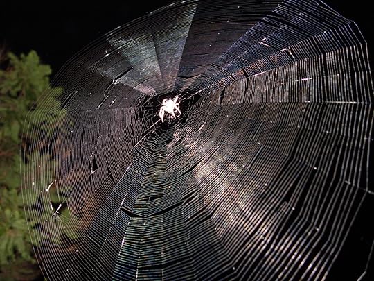 I saw a beautiful spider web one morning. My first poem was . . . well . . . poetic. Then I decided to write a humorous version. This is the second. "Table for One" or "Would You Like to Come to Dinner?"Sitting at a table for oneAll alone in the center