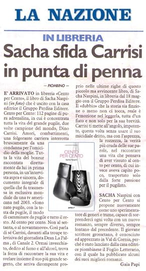 Cento per Cento: 112 pagine di pura adrenalina, in cui è concentrata tutta la vita del grande pugile, due volte campione del mondo, Dino Carrisi. Amori, combattimenti, una folgorante carriera interrotta bruscamente da una condanna per l'omicidio della moglie. Tutta la vita del boxeur raccontata direttamente da lui in prima persona, in un'intervista aspra e sincera, documento integrale di quella che fu trasmessa in esclusiva mondiale da una tv americana nel 2003.
