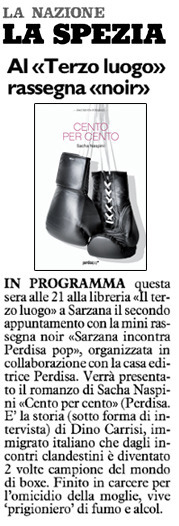 "Sono nato pugile, con la testa da pugile, il modo di camminare da pugile e tutto il resto. Al cento per cento. Non al settanta, o al novantanove". Così parla di sé Carrisi, davanti alla troupe televisiva del giornalista Dean La Palma, di Canale 2. Ormai invecchiato, dedito al fumo e all'alcool, trova la forza di raccontare la sua vita e svelare insieme il suo più grande segreto, che arriva dirompente proprio nelle ultime righe di questo piccolo ma avvincente libro, di Sacha Naspini, in libreria dal 18 maggio con il Gruppo Perdisa Editore.
