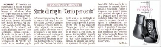 Sacha Naspini con Cento per Cento si propone nuovamente come uno sperimentatore di generi e trame, capace di sorprenderci ogni volta con un nuovo romanzo, sempre diverso, sempre lontano dal precedente.