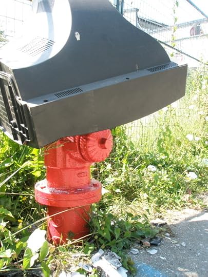 As seen in Broma: an old TV is used to keep the rain off a fire hydrant.