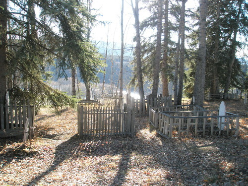 For many reasons I tend to view cemeteries as destinations. They are parks for strolling, or when travelling, are tourist attractions. This is a view of the Yukon River from the cemetery overlooking Dawson, taken when I first arrived in October. This cemetery has a number of features, including crib-like picket fences and old illegible wooden grave markers. This is actually the third gravesite; the first, by the Yukon, was prone to flooding and erosion, ...