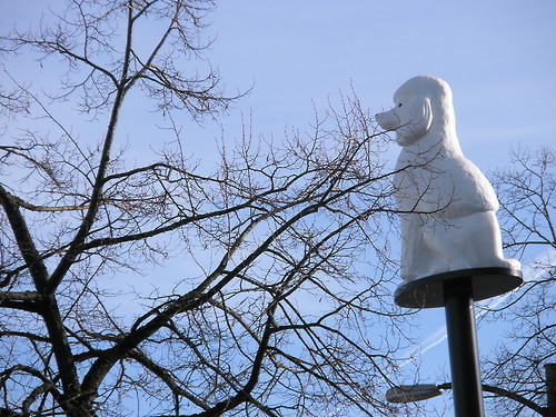 A seven foot ceramic pole-sitting poodle...