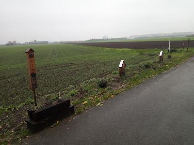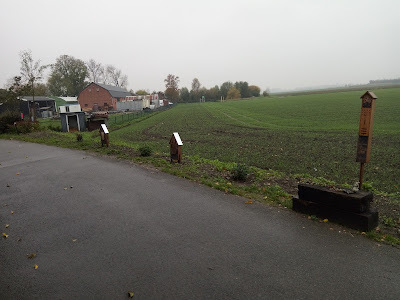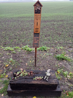 It's a row of little bee and insect hotels built by the locals along the edge of a field where they're trying to encourage wild flowers to grow as well. Apologies for the dreary skies, but aren't the tiny houses delightful? Seeing them there made my day and I'm so pleased to see our village folk getting involved in projects to nurture insect life.