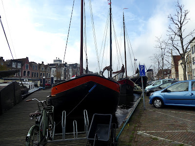 As all my readers here know, I am drawn to the water wherever I go, and if there are old, traditional barges to see, all the better. Leiden has its own historic harbour, which despite being small is home to around a dozen beautiful old sailing barges. My daughter knew I'd want to see them so on our way back to the station she indulged her mum and I was able to take a few photos. The light wasn't the best, but I think you'll agree there are some lovely classic craft to be seen.