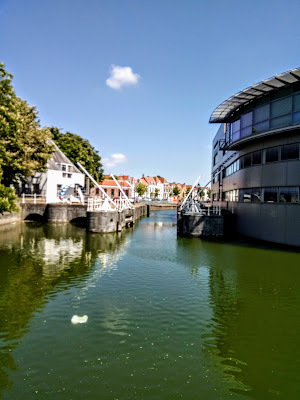 Looking back through my blogs, I notice I didn't post much in June, mainly because I was very busy with work, but the first post I wrote focused on the fun we experienced when the bridge over the canal at Sas van Gent was closed for maintenance, the fun part being that we had to take a ferry across. For more than a week, I made a point of going to Sas every day just so I could enjoy a daily boat trip while we were stuck in harbour with the engine problem.