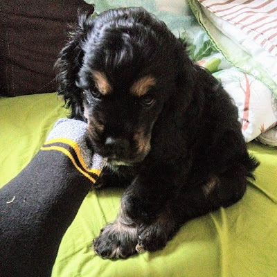 But now Mo has a new spaniel puppy who is doing his best to fill the space. The delightful Mack has joined their household, and last weekend, Koos and I puppy-sat for Mo and her boyfriend while they attended a previously arranged commitment. He was an absolute delight; so sweet and so affectionate. An adorable bundle of wiggling, piddling joy 😊
