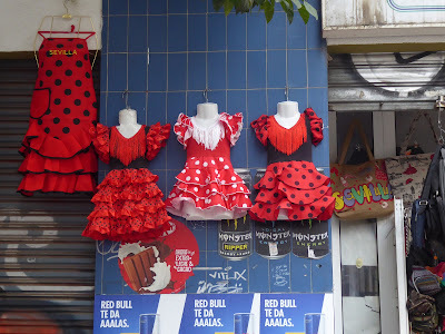 Most readers here probably know that Seville is Deep in Andalucia and flamenco is everywhere. Even the little corner shop in our street had these delightful little dresses for small girls. Interestingly, this shop, like hundreds of others we found in Seville, was run by Chinese people, all of whom speak Spanish, but with the standard confusion between L and R, which made me smile. It reminded me of so many of my students who have the same problem.