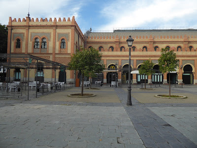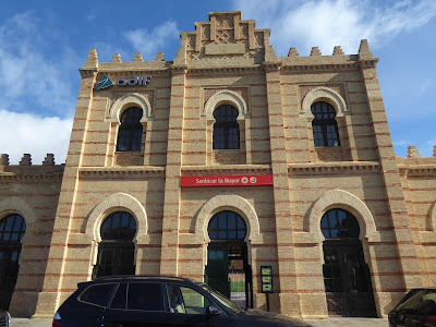 The rather grand Moorish building in the photo above used to be the city's railway station but is now a kind of enclosed market with small kiosk-type shops inside. (We won't mention the McDonald's, which seems to be everywhere). This kind of building design seems to have been quite common for train stations as we saw others with similar arches and decorative detail.