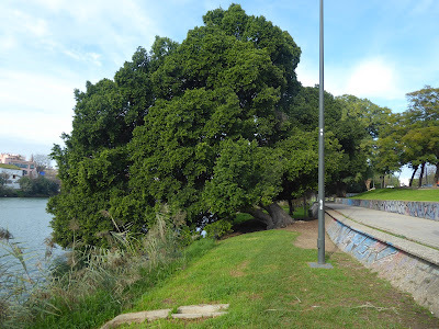 Of course, the first place Koos and I always go is to the waterside (eerst naar de waterkant, as they say in Dutch), and we were much impressed by this amazing old tree leaning over the banks of the Guadalquivir. On the subject of the river, the stretch that runs through the city is actually still water. Its main tidal course was re-routed to the west of the city in the 20th century to prevent flooding, and continues on to Cordoba and beyond. Apparently, however, navigation is only possible up to Seville, and only when the tide is coming in. The port of Seville is in the reach of the river that runs through the city, and is behind a large lock. From what I've read, though, flooding can still be an issue as in both 2006 and 2010, the city suffered from severe floods, and it was even worse in 1963.