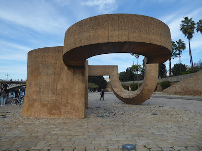 The weather was somewhat grey in Huelva, but we liked it all the same. It's a place where people live, like Gines, and it doesn't put on any airs. Two things appealed to us no end: one was the discovery of its industrial history as represented in the restored pier: now a pedestrian walkway, but once the loading quay for ships transporting copper from the nearby open cast mines. If you watch the brief video, it gives you a glimpse of the scale of the mining in the area. They only stopped operating about 25 years ago.
