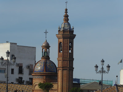 Our second outing was to Huelva, a town on the coast. I'd read quite a bit about it before we went to Spain and was told it wasn't favoured by tourists, which somehow made it more appealing. We took the train from Seville's Santa Justa station on Monday the 15th and arrived in Huelva at a little after 11:30 following a journey of an hour and a half. The scenery on the way was gentle, rolling hills without much to distinguish them but we enjoyed both the trip and seeing a little more of what was probably the coastal plain.
