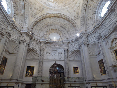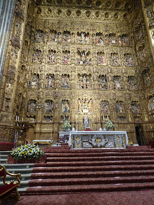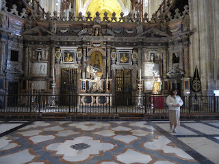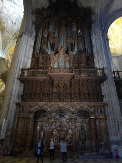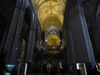 The photos below are of Seville cathedral. It is apparently the third largest church in the world and the biggest gothic church in Europe. We managed to visit it on our last day and were really impressed by its immense size. I also liked the mix of styles. It was an add-on (if you like) to an Arabic mosque and I loved the simplicity of those early parts of the building. The opulence of the ornate nave and sanctuary were less to my taste, partly because of the extreme demonstration of affluence they represented, but also because it was bordering on overkill. I took dozens of photos but it's hard to decide what's worth including.
