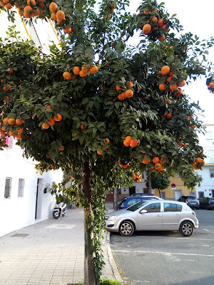 It isn't possible to talk about Seville without mentioning the oranges. They’re a real feature of the city streets, and if you are wondering what happens to them, they’re collected and cleared now and then by the city council. Apart from the fact they're far too bitter to eat, it isn't permitted to pick them as they belong to the local authorities. From what I've read, they're used for a number of purposes, including medicinal and culinary. I remember my mother buying Seville oranges to make marmalade when I was a child, but we never ate them raw. It was lovely to see them on virtually every tree in the city streets, though.