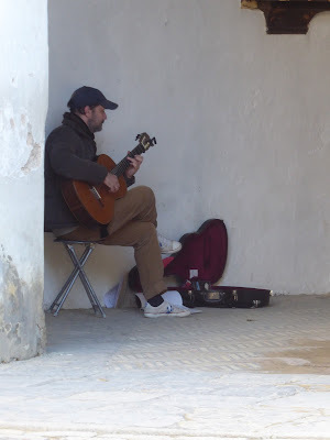 The man in the photo below was playing flamenco guitar with great skill in a passage.