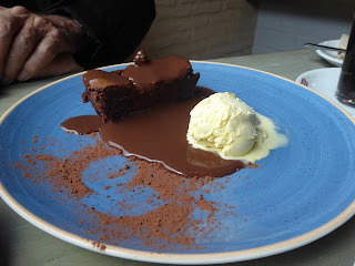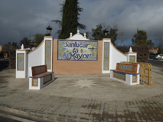 Our last excursion was again by bus to the beautiful, and probably touristy, town of Sanlúcar la Mayor, which is roughly twenty-five kilometres from Seville. Again, the bus ride was incredibly cheap and cost less than €4 return for the two of us. It was quite a walk from the bus stop down to the town centre, and since it was a bit drizzly we first had coffee at a café on the main through road. This proved to be a feast in itself. Just for something extra, we ordered a piece of chocolate cake, which eventually appeared smothered in chocolate sauce and with a large scoop of ice cream. It was quite a creation, and utterly delicious.