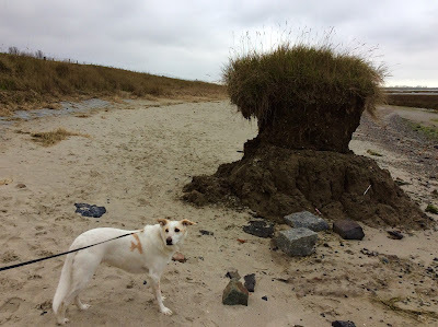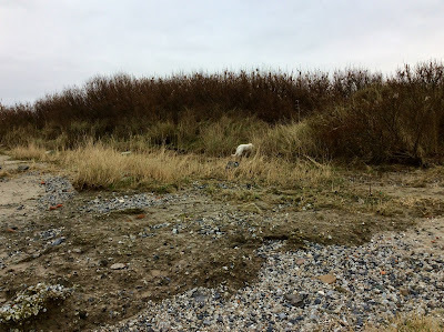 That said, 'daughter one' and I did a New Year's beach walk on the 31st and, as often in the past, we headed for the estuary where the mix of sand, pebbles and tidal scrubland is always appealing. Luckily, the weather dried up for our stroll although it remained mostly wet and windy here (and still is). There were very few others around, so other than the weather, it was perfect. Just a couple of dog owners, who like ourselves were escaping the bangs. We could listen to the wind, the keening of the gulls and the cries of the terns without interference. There was a brief episode with some quad bikers, who shouldn't have been there at all, but they didn't stay long.