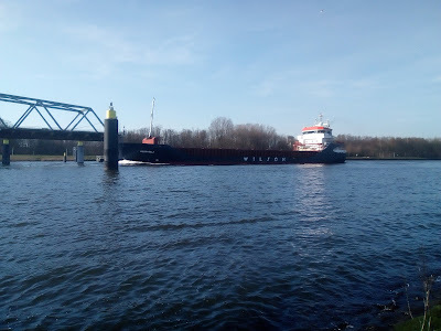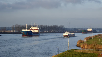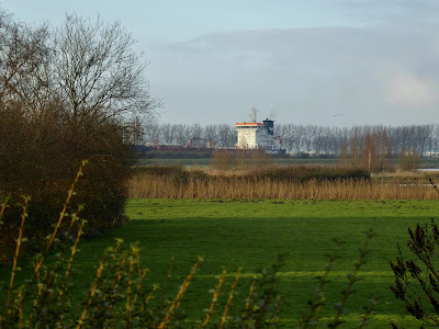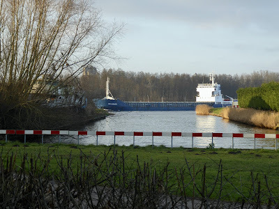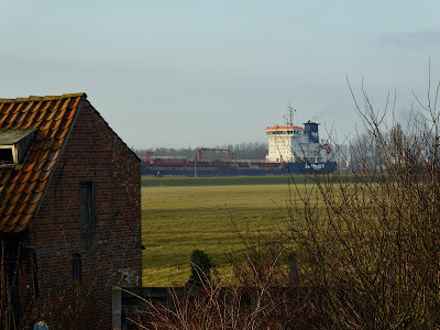 A few days ago, we had a rare afternoon of sunshine, so I donned my coat, hat and gloves, grabbed my camera and took off for a walk. My way took me along a local village dyke not far from the great Terneuzen to Gent sea canal and I was, as usual, on the lookout for ships on their way to or from the Gent docklands.