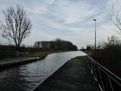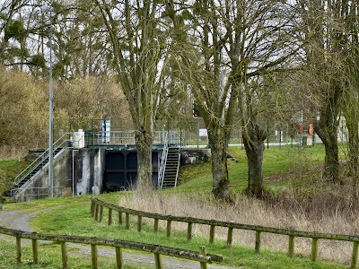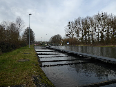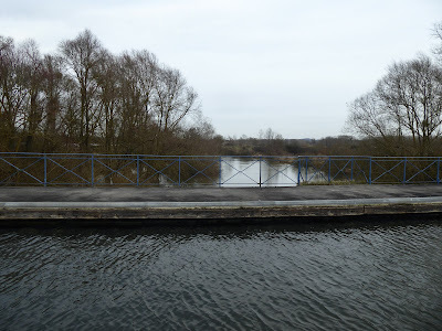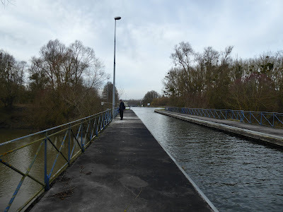 Not to be denied our day out, though, we took our picnic lunch to the lock and then went for a walk along the aqueduct. The photos below tell a better story than I can of the magical scene. The Oise river over which the aqueduct is built was in flood and water inundated many of the fields along its route. To me, it looked as if this often happens as the houses were built on rises and there seemed to be plenty of room for the water to spread out.