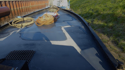 I think almost everyone in Europe has experienced this phenomenon, so I know it will be little surprise to local readers, but it really was quite a shock to wake up on Wednesday and find everything covered in fine yellow dust, pock-marked with small lumps of sand. It happened overnight when it also rained as well, so it was already sticky and hard to clean off before we'd even started. As I write, I still haven't managed to wash everything down, but Thursday was spent on the Vereeniging, which had turned a dull shade of brown. And then yesterday I attacked the Hennie H, whose pale shade of beige wasn't quite so unsightly. Luckily for me, the sun shone brightly upon my efforts, and I quite enjoyed playing Mrs Mop to our old ladies, although I fear there's another fine layer of dust on both barges today. Never mind. There are worse problems in life, and they both looked clean for a while.